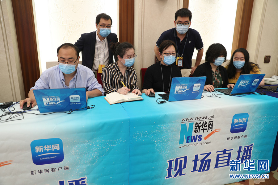 ??? 5月20日,全國政協(xié)十三屆三次會議召開新聞發(fā)布會。大會新聞發(fā)言人郭衛(wèi)民向中外媒體介紹本次大會有關情況并回答記者提問。圖為本網(wǎng)記者在新聞發(fā)布會現(xiàn)場做直播準備工作。新華網(wǎng)記者?王翰林 攝