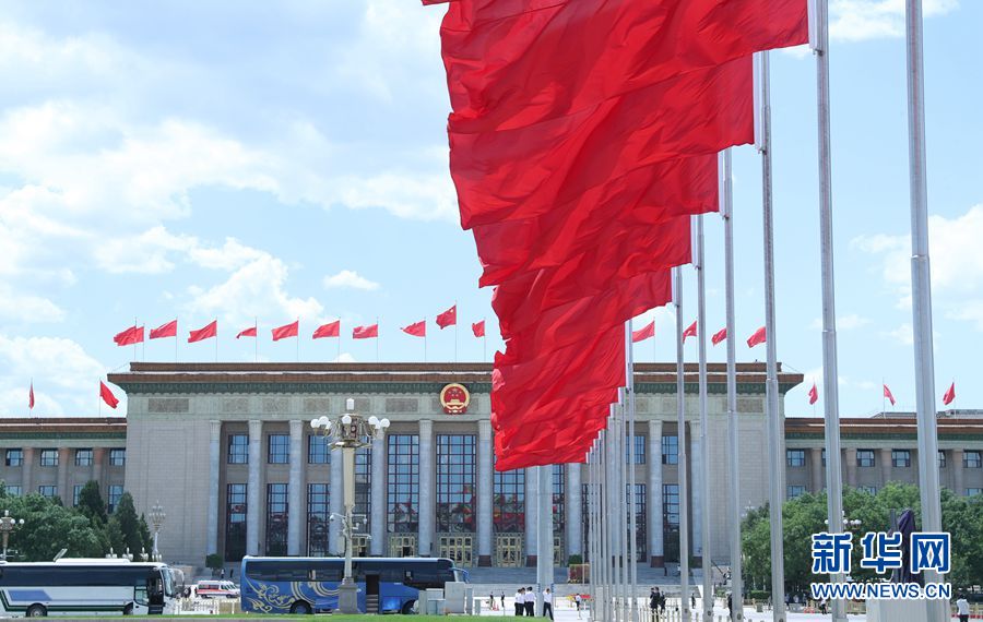 5月27日,中國人民政治協(xié)商會議第十三屆全國委員會第三次會議在北京人民大會堂舉行閉幕會。這是天安門廣場上紅旗飄揚。 新華網(wǎng) 翟子赫 攝