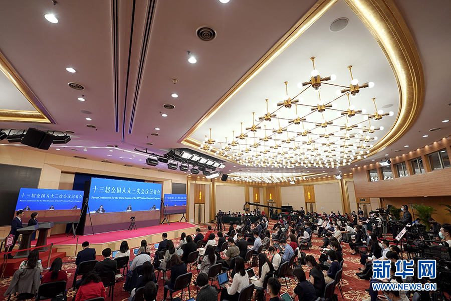 5月28日,國(guó)務(wù)院總理李克強(qiáng)在北京人民大會(huì)堂出席記者會(huì)并回答中外記者提問(wèn)。這是記者在梅地亞中心多功能廳采訪。 新華社記者 劉金海 攝