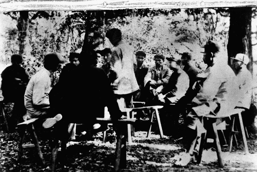 中央執(zhí)行委員會(huì)舉行第一次會(huì)議,中間站著講話(huà)的是毛澤東 新華社圖片
