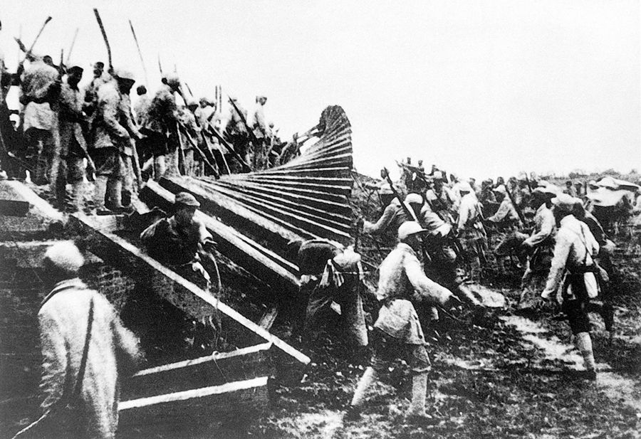 1947年6月30日夜,劉鄧大軍突破國(guó)民黨軍隊(duì)的黃河防線,挺進(jìn)大別山,揭開我軍戰(zhàn)略進(jìn)攻序幕。新華社圖片