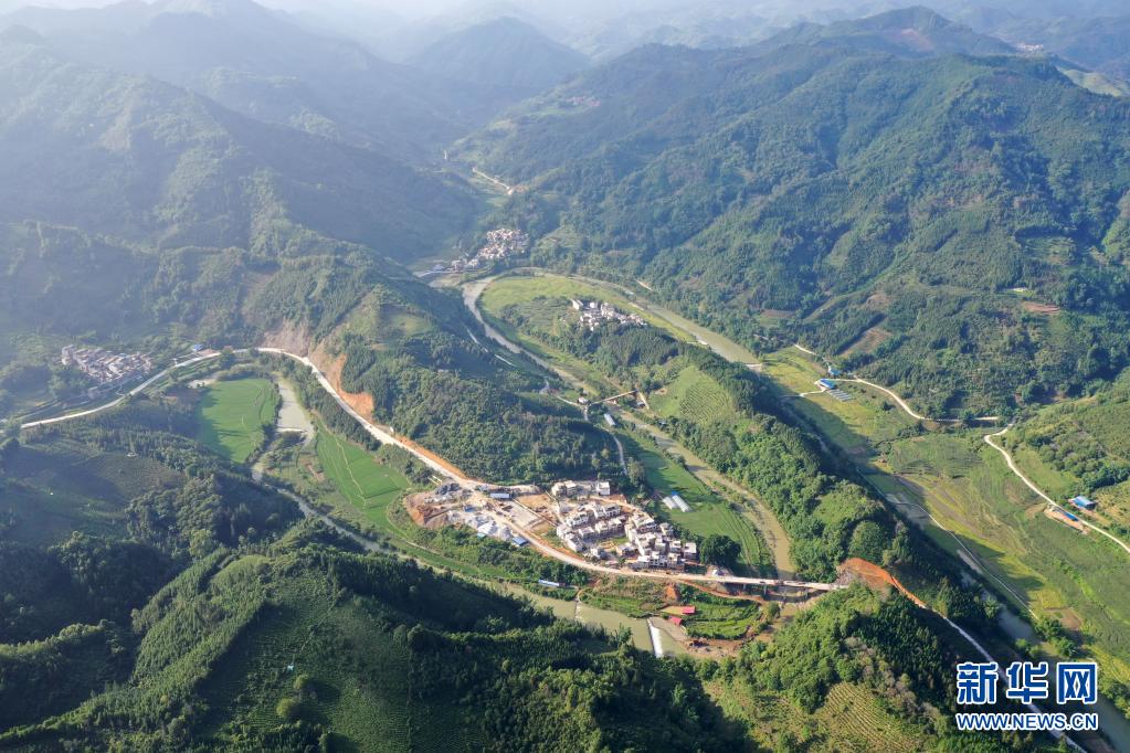 這是廣西資源縣“資水丹霞”田園綜合體內(nèi)的田園景觀(4月29日攝,無(wú)人機(jī)照片)。新華社記者 陸波岸 攝