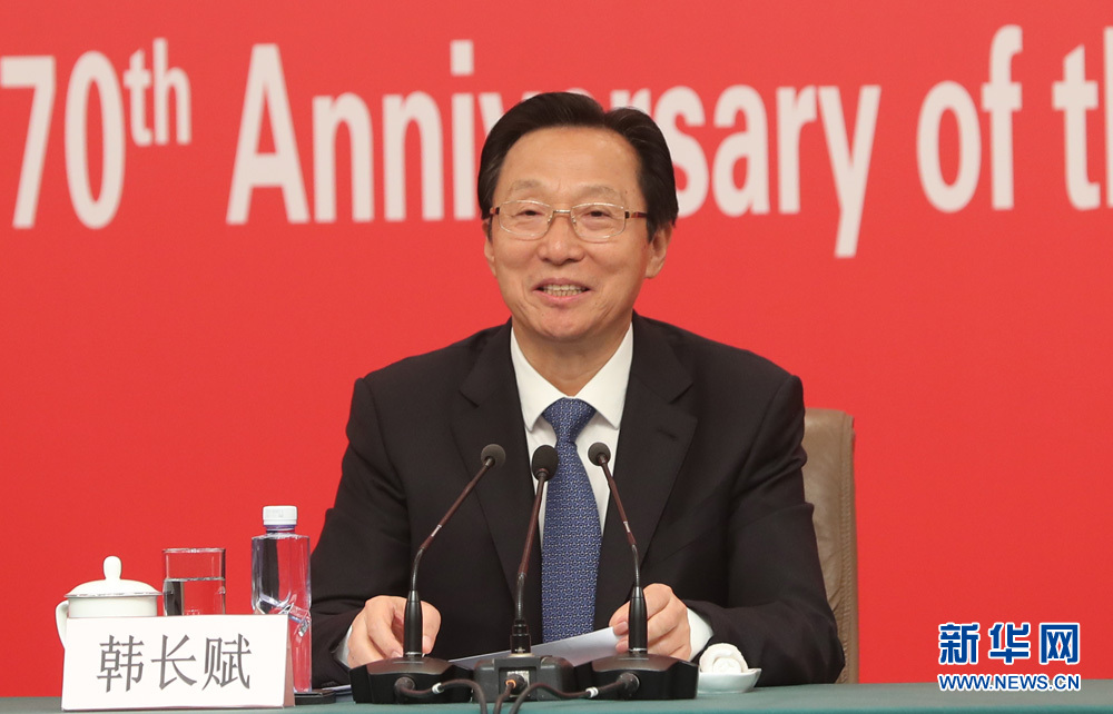 9月27日,慶祝中華人民共和國(guó)成立70周年活動(dòng)新聞中心在梅地亞中心二層新聞發(fā)布廳舉辦第三場(chǎng)新聞發(fā)布會(huì),中央農(nóng)村工作領(lǐng)導(dǎo)小組辦公室主任、農(nóng)業(yè)農(nóng)村部部長(zhǎng)韓長(zhǎng)賦,國(guó)務(wù)院扶貧開(kāi)發(fā)領(lǐng)導(dǎo)小組辦公室主任劉永富介紹全面建成小康社會(huì),扎實(shí)推進(jìn)脫貧攻堅(jiān)和鄉(xiāng)村振興,并回答記者提問(wèn)。圖為韓長(zhǎng)賦介紹有關(guān)情況。新華網(wǎng) 陳杰 攝