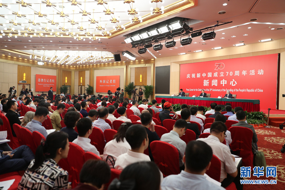 9月27日,慶祝中華人民共和國(guó)成立70周年活動(dòng)新聞中心在梅地亞中心二層新聞發(fā)布廳舉辦第三場(chǎng)新聞發(fā)布會(huì),中央農(nóng)村工作領(lǐng)導(dǎo)小組辦公室主任、農(nóng)業(yè)農(nóng)村部部長(zhǎng)韓長(zhǎng)賦,國(guó)務(wù)院扶貧開(kāi)發(fā)領(lǐng)導(dǎo)小組辦公室主任劉永富介紹全面建成小康社會(huì),扎實(shí)推進(jìn)脫貧攻堅(jiān)和鄉(xiāng)村振興,并回答記者提問(wèn)。圖為發(fā)布會(huì)現(xiàn)場(chǎng)。新華網(wǎng) 陳杰 攝