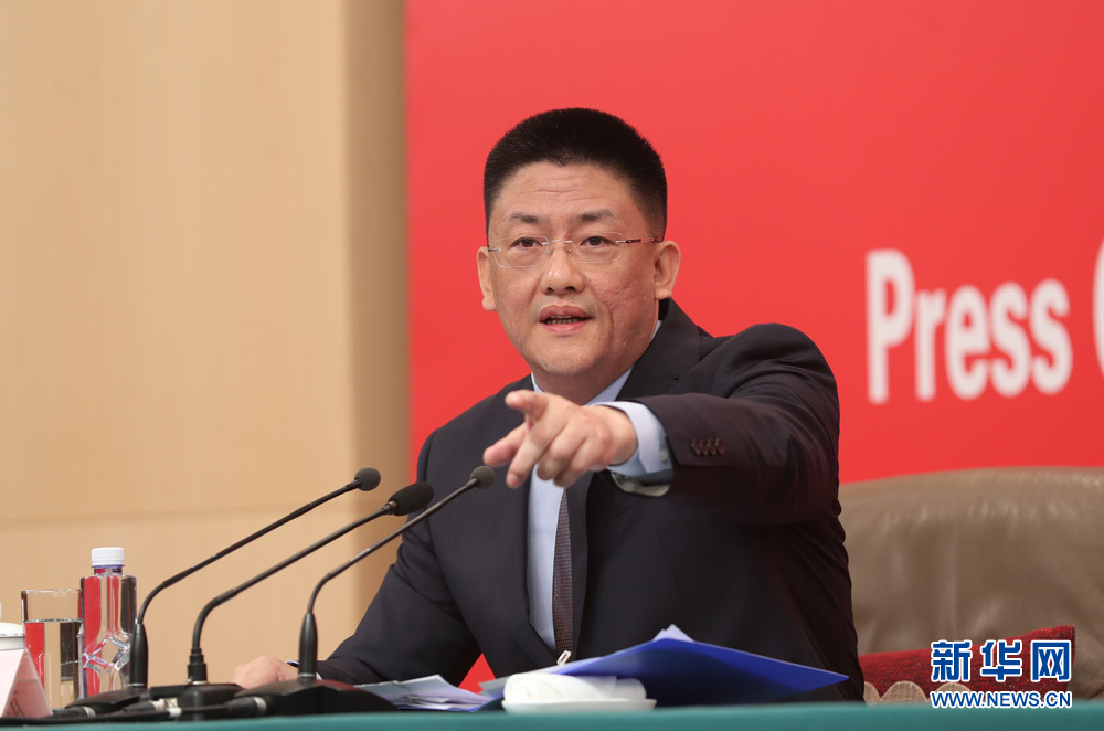 9月27日,慶祝中華人民共和國成立70周年活動新聞中心在梅地亞中心二層新聞發(fā)布廳舉辦第三場新聞發(fā)布會,中央農(nóng)村工作領(lǐng)導(dǎo)小組辦公室主任、農(nóng)業(yè)農(nóng)村部部長韓長賦,國務(wù)院扶貧開發(fā)領(lǐng)導(dǎo)小組辦公室主任劉永富介紹全面建成小康社會,扎實(shí)推進(jìn)脫貧攻堅(jiān)和鄉(xiāng)村振興,并回答記者提問。圖為發(fā)布會主持人,慶祝中華人民共和國成立70周年活動新聞中心負(fù)責(zé)人趙江濤。新華網(wǎng) 陳杰 攝