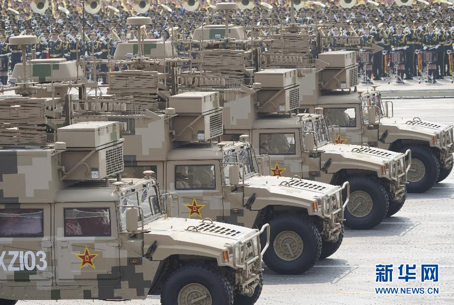 當(dāng)日上午,長(zhǎng)安街上鐵流滾滾,16輛配有形狀各異天線(xiàn)車(chē)輛組成的方隊(duì)格外引人注目。受閱的信息偵測(cè)、數(shù)據(jù)干擾等信息作戰(zhàn)車(chē)組,是我國(guó)自主研發(fā)的新一代信息作戰(zhàn)裝備,具有破擊節(jié)點(diǎn)、癱瘓?bào)w系等性能。