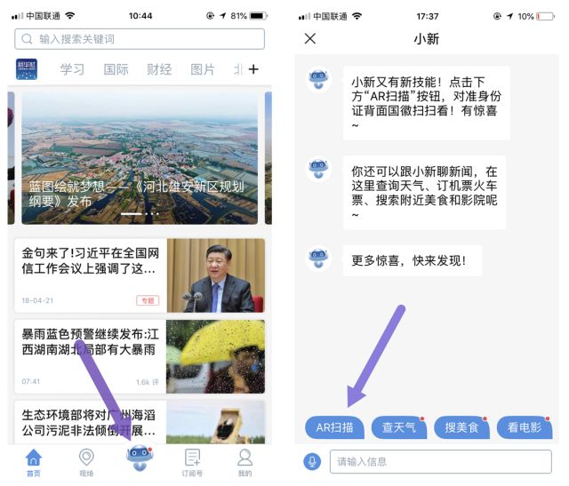 只要點(diǎn)擊新華社客戶端首頁下方的“小新機(jī)器人”,使用“AR功能”掃描二代身份證帶有國徽和長城圖案的一面,就可以隨時和新華社記者一起出發(fā)。