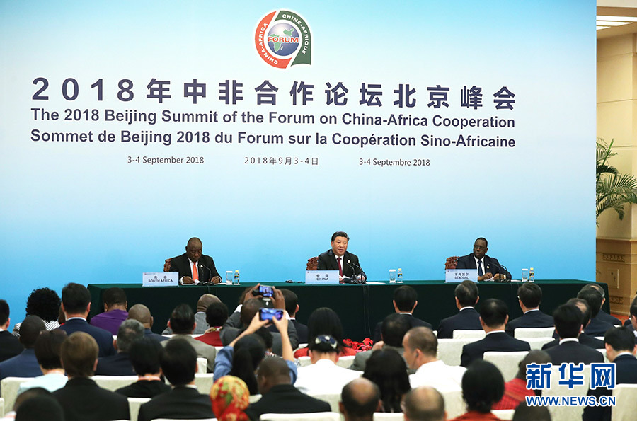 新華社北京9月4日電(記者鄭明達(dá)、孫奕)4日,2018年中非合作論壇北京峰會(huì)閉幕后,國(guó)家主席習(xí)近平同論壇前任共同主席國(guó)南非總統(tǒng)拉馬福薩、新任共同主席國(guó)塞內(nèi)加爾總統(tǒng)薩勒在人民大會(huì)堂共同會(huì)見(jiàn)記者。