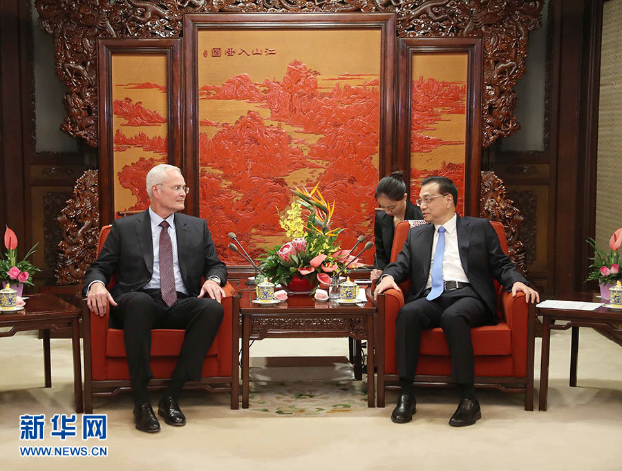新華社北京9月7日電(記者 孫奕)國務(wù)院總理李克強7日下午在中南海紫光閣會見美國??松梨诠径麻L兼首席執(zhí)行官伍德倫。