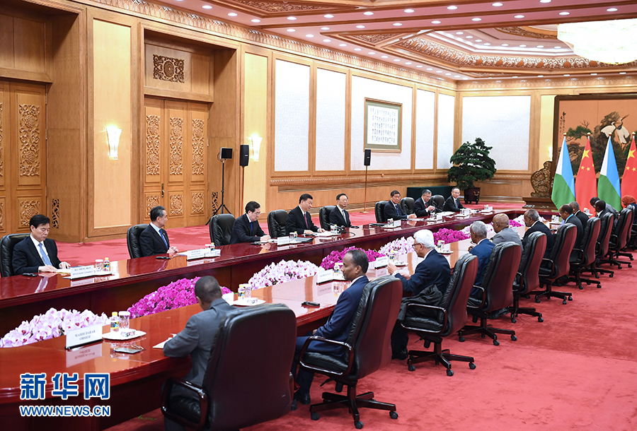 習近平指出,中吉建交40年來,兩國真誠友好、平等相待,成為彼此信賴、合作共贏的好朋友、好伙伴、好兄弟。中方愿同吉方一道,以推進共建“一帶一路”、落實中非合作論壇北京峰會成果為契機,推動兩國戰(zhàn)略伙伴關系不斷向前發(fā)展。雙方要繼續(xù)在彼此核心利益和重大關切問題上相互支持,加強在國際和地區(qū)事務上溝通和協(xié)調(diào)。中方將為吉布提經(jīng)濟社會發(fā)展繼續(xù)提供支持,交流發(fā)展經(jīng)驗,鼓勵有實力的中國企業(yè)赴吉布提投資興業(yè)。