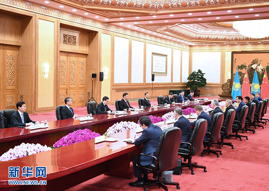 4月28日,國家主席習近平在北京人民大會堂會見哈薩克斯坦首任總統(tǒng)納扎爾巴耶夫。 新華社記者 謝環(huán)馳 攝