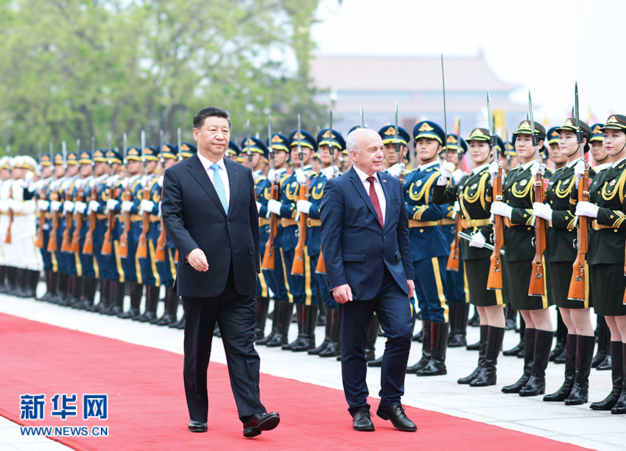 4月29日,國(guó)家主席習(xí)近平在北京人民大會(huì)堂同瑞士聯(lián)邦主席毛雷爾舉行會(huì)談。這是會(huì)談前,習(xí)近平在人民大會(huì)堂東門(mén)外廣場(chǎng)為毛雷爾舉行歡迎儀式。 新華社記者 謝環(huán)馳 攝