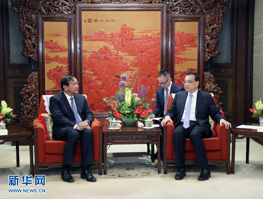 5月31日,國務(wù)院總理李克強(qiáng)在北京中南海紫光閣會見柬埔寨副首相兼外交大臣布拉索昆。 新華社記者 劉衛(wèi)兵 攝