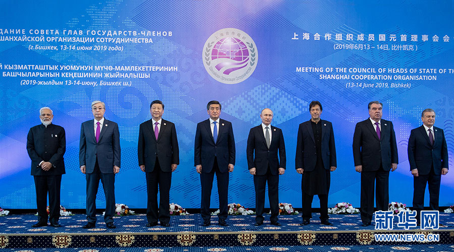 6月14日,上海合作組織成員國元首理事會第十九次會議在吉爾吉斯斯坦首都比什凱克舉行。國家主席習(xí)近平同印度總理莫迪、哈薩克斯坦總統(tǒng)托卡耶夫、吉爾吉斯斯坦總統(tǒng)熱恩別科夫、巴基斯坦總理伊姆蘭·汗、俄羅斯總統(tǒng)普京、塔吉克斯坦總統(tǒng)拉赫蒙、烏茲別克斯坦總統(tǒng)米爾濟(jì)約耶夫出席會議。習(xí)近平在會上發(fā)表重要講話。這是小范圍會談前,上海合作組織成員國元首集體合影。 新華社記者 謝環(huán)馳 攝