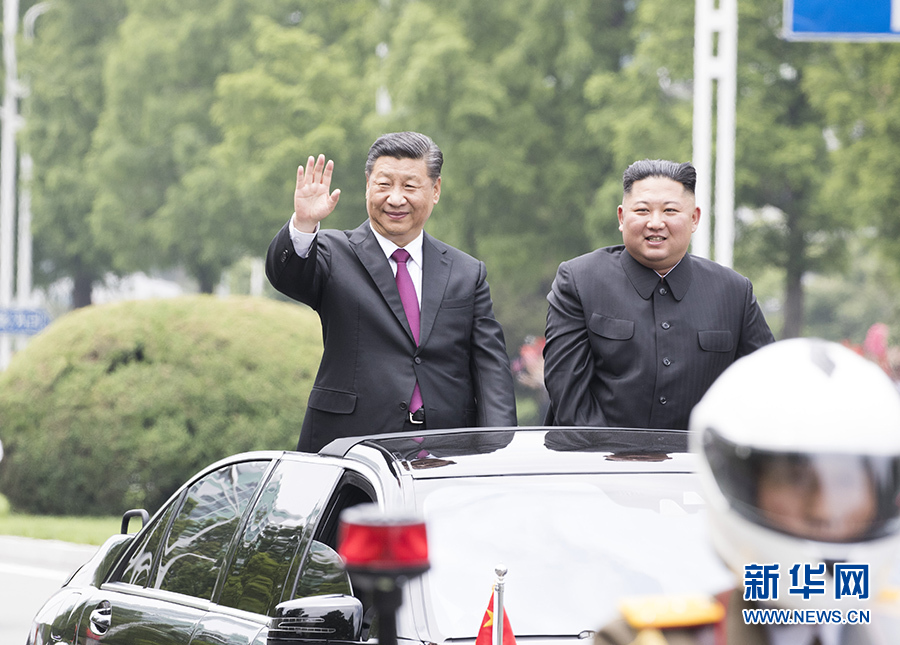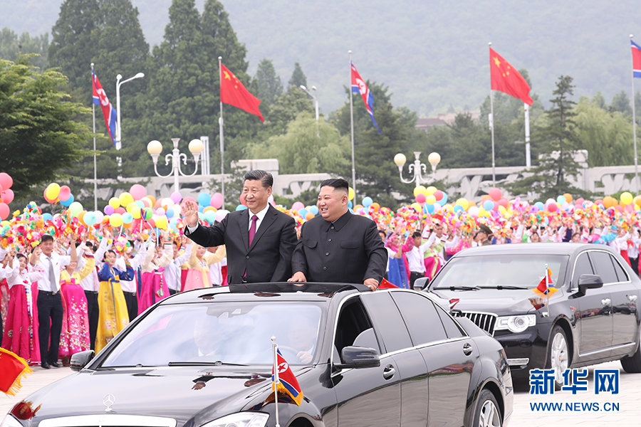6月20日,中共中央總書記、國(guó)家主席習(xí)近平乘專機(jī)抵達(dá)平壤,開(kāi)始對(duì)朝鮮民主主義人民共和國(guó)進(jìn)行國(guó)事訪問(wèn)。朝鮮勞動(dòng)黨委員長(zhǎng)、國(guó)務(wù)委員會(huì)委員長(zhǎng)金正恩和夫人李雪主到機(jī)場(chǎng)熱情迎接習(xí)近平和夫人彭麗媛。朝方在機(jī)場(chǎng)舉行隆重歡迎儀式。歡迎儀式結(jié)束后,習(xí)近平與金正恩同車前往錦繡山太陽(yáng)宮廣場(chǎng),沿途數(shù)十萬(wàn)群眾夾道歡迎。 新華社記者 申宏 攝