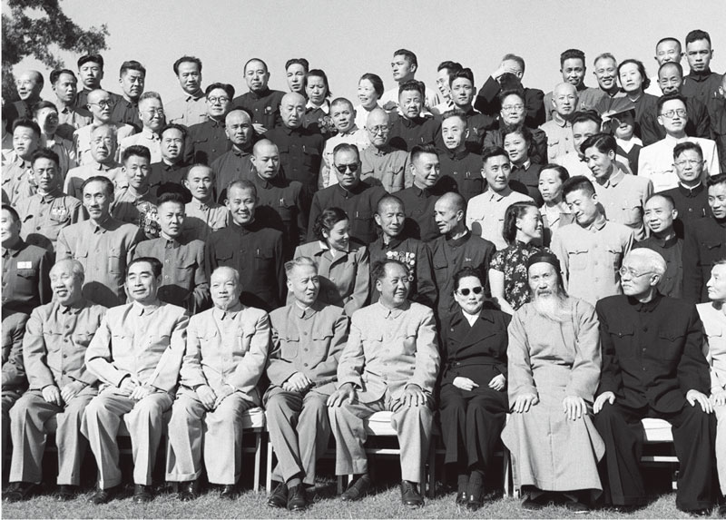 中華人民共和國第一屆全國人民代表大會(huì)第一次會(huì)議全體代表于1954年9月21日合影。毛澤東主席和代表們?cè)谝黄?。前排左起:董必武、周恩來、李?jì)深、劉少奇、毛澤東、宋慶齡、張瀾、林伯渠。 新華社稿 侯波/攝