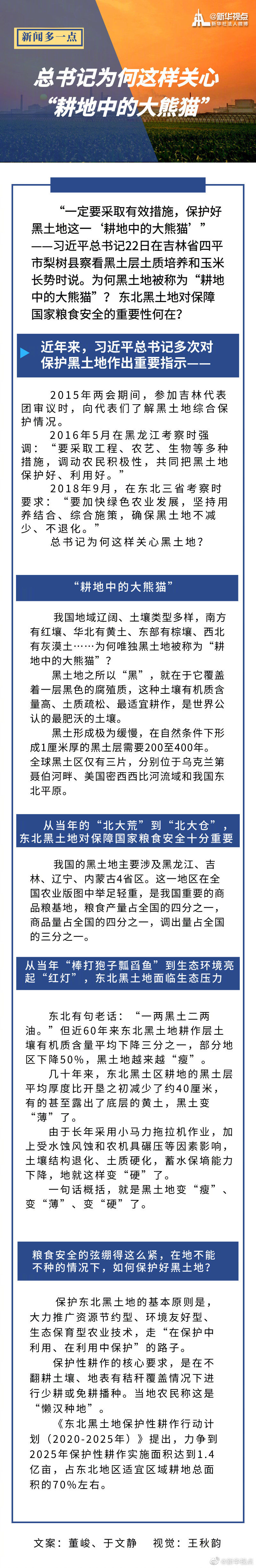 “一定要采取有效措施,保護好黑土地這一‘耕地中的大熊貓’”——習近平總書記22日在吉林省四平市梨樹縣察看黑土層土質培養(yǎng)和玉米長勢時說。為何黑土地被稱為“耕地中的大熊貓”? 東北黑土地對保障國家糧食安全的重要性何在?一起戳圖了解