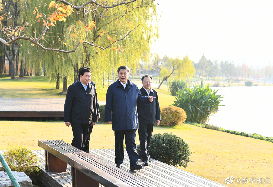 習近平總書記13日在揚州考察,走進運河三灣生態(tài)文化公園。習近平指出,目前的長三角一體化發(fā)展從頂層規(guī)劃到實際推動都取得了明顯的成果,還要繼續(xù)抓下去。生態(tài)文明建設(shè)在推動長三角一體化發(fā)展中占有重要地位,直接關(guān)系人民群眾生活幸福,關(guān)系青少年健康成長,是廣大人民群眾的共識和呼聲。(文字記者:張曉松、朱基釵 攝影:鞠鵬、謝環(huán)馳、燕雁)