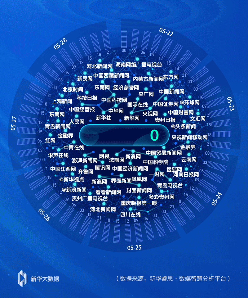 兩會開始后,新華睿思每4個小時進(jìn)行一次傳播熱度監(jiān)測。數(shù)據(jù)顯示,媒體傳播熱度、網(wǎng)民對兩會的關(guān)注度與總書記的重要活動、重要講話發(fā)布時間點(diǎn)高度一致。