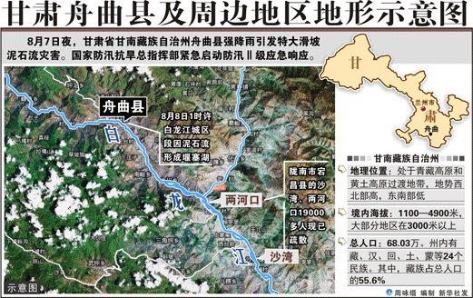 舟曲縣位于甘肅南部,甘南藏族自治州東南部,東鄰武都縣,北接宕昌縣,西南與迭部縣、文縣和四川省九寨溝縣接壤。全縣總面積3010平方公里,轄20個鄉(xiāng)、2個鎮(zhèn),210個行政村,總?cè)丝?3.47萬人,其中藏族4.4萬人,占32.78%。