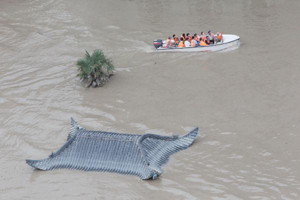 沖鋒舟為舟曲受災(zāi)群眾開辟水上通道
