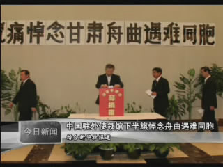 中國駐外使領館下半旗悼念舟曲遇難同胞