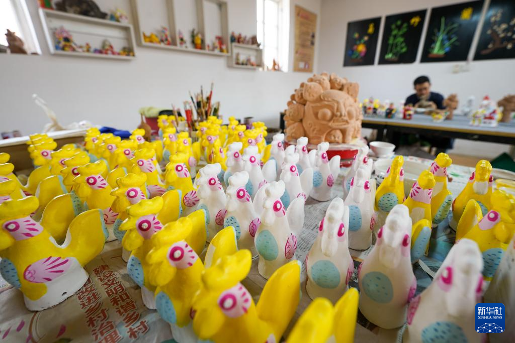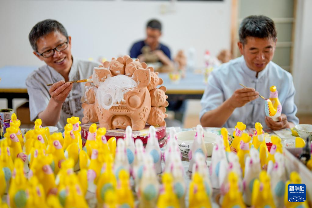 6月1日,泥塑艺人在河北省玉田县亮甲店镇的一家泥塑工作室内制作泥塑。