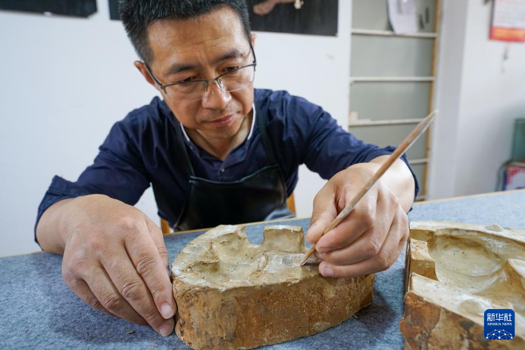 6月1日,泥塑艺人在河北省玉田县亮甲店镇的一家泥塑工作室内清理泥塑模具。