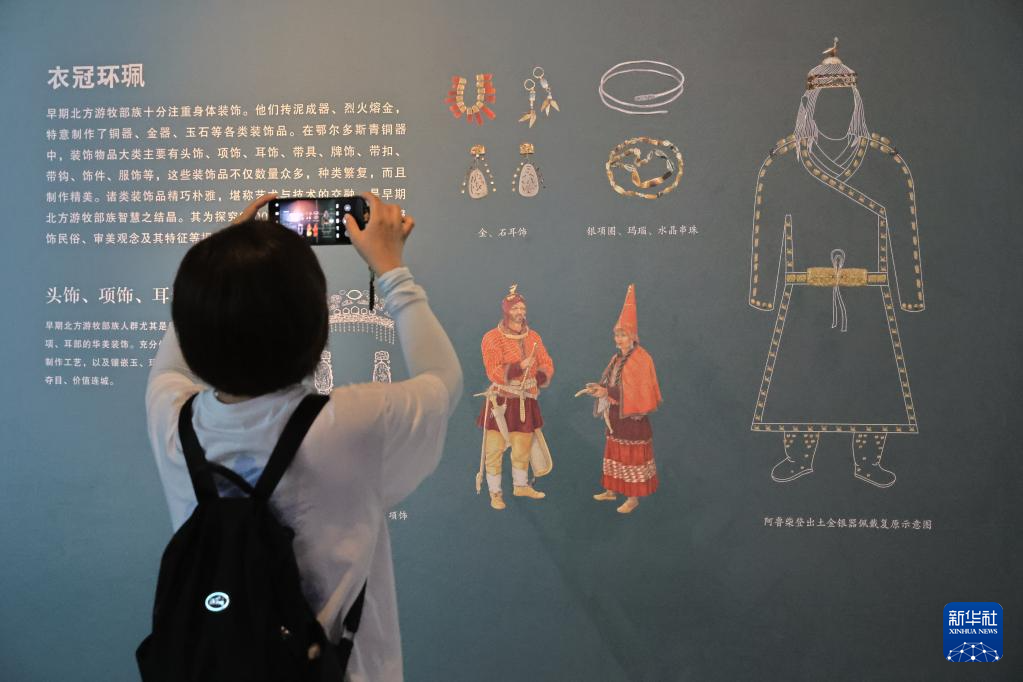 展览分为穹宇长青、阴山牧马两个部分,以鄂尔多斯青铜器、金器、银器为载体,300余件精品文物再现了长城沿线地带以匈奴为代表的游牧民族早期草原文明的生活场景。
