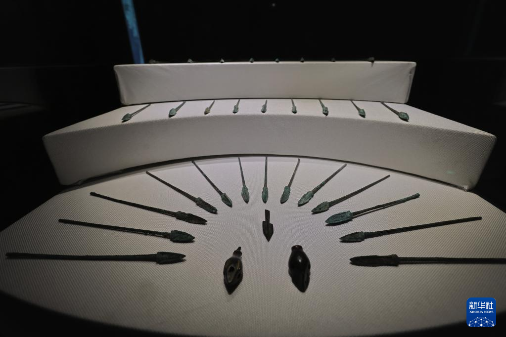 6月9日在“鄂尔多斯青铜器文物精品展”拍摄的展品“青铜镞”。