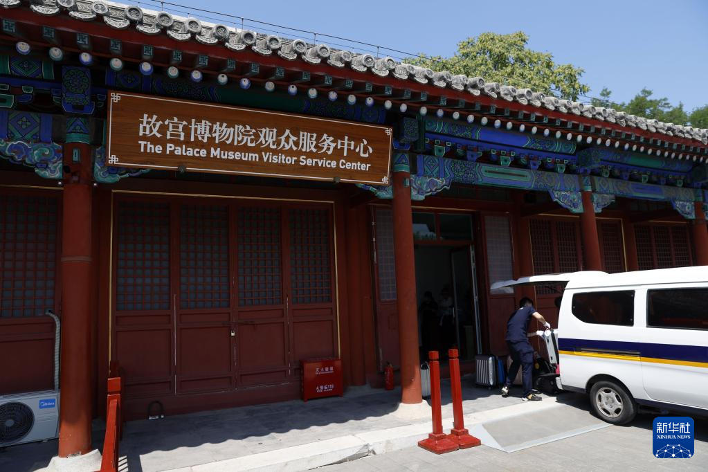 6月30日,工作人员在故宫观众服务中心将游客寄存的行李装车,准备运往神武门出口。
