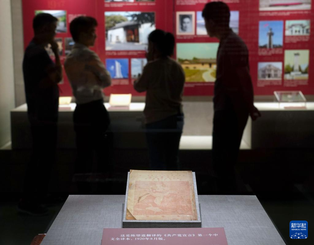 7月25日拍摄的展览展出的陈望道译《共产党宣言》首个中文全译本。