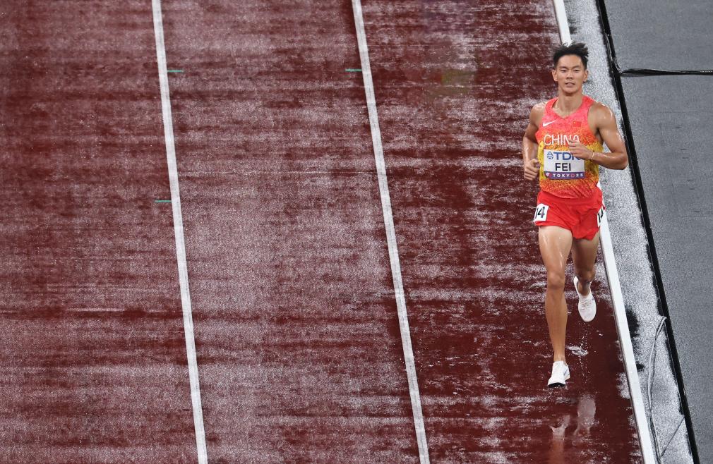 9月21日,中国选手费翔(右)在2025年世界田径锦标赛男子十项全能1500米比赛中。新华社记者 贾浩成 摄