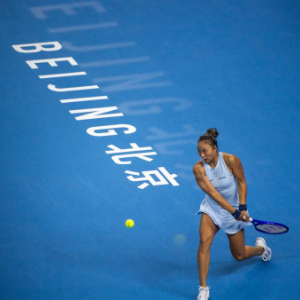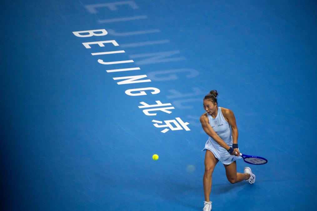 ↑9月27日,郑钦文在中网第二轮比赛中。新华社记者胡竞文摄