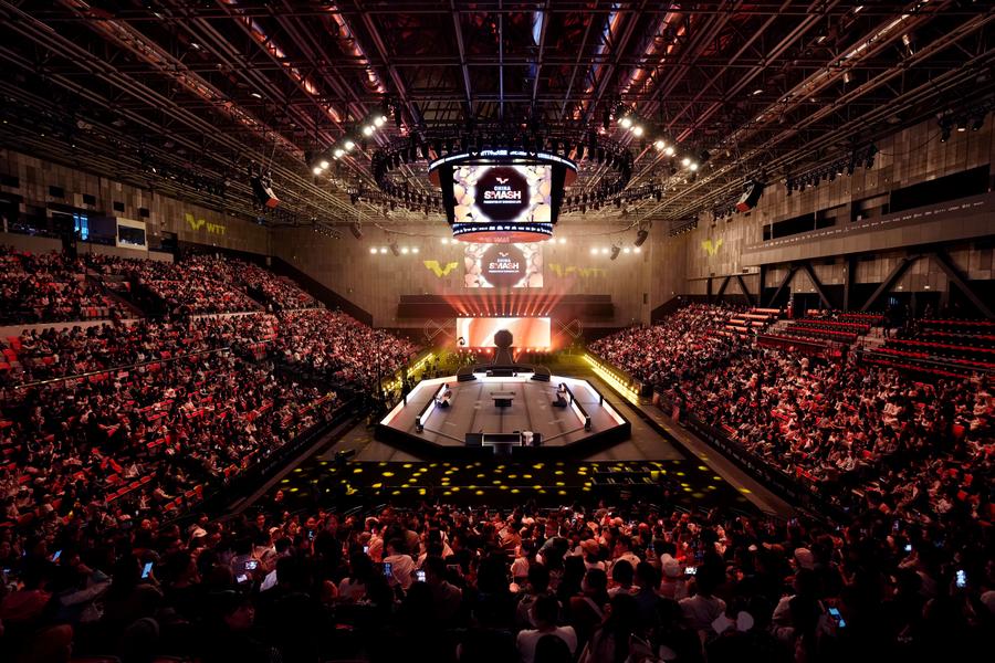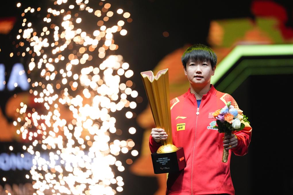↑2024年世界乒乓球职业大联盟(WTT)中国大满贯女子单打,中国选手孙颖莎夺冠。新华社记者鞠焕宗摄