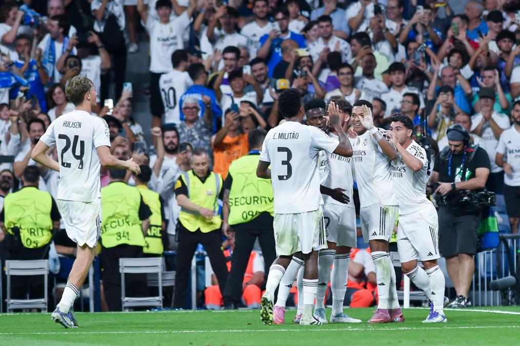 ↑9月16日,皇家马德里队在欧冠首轮比赛中,主场2:1战胜法甲马赛队。新华社发(古斯塔沃·巴连特摄)