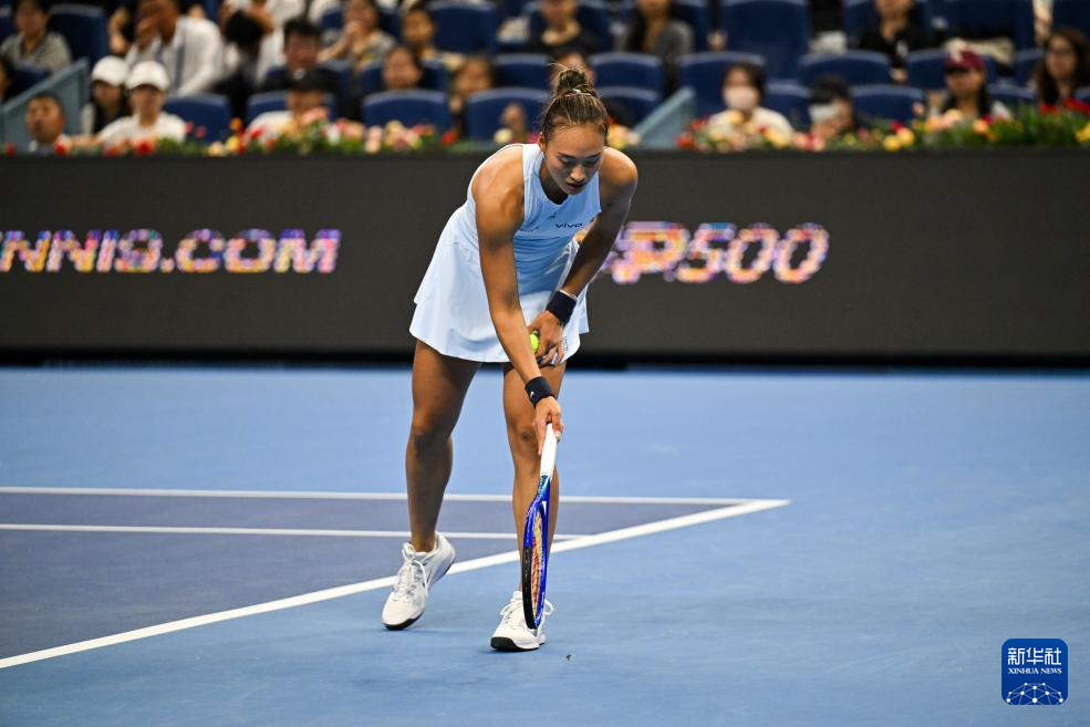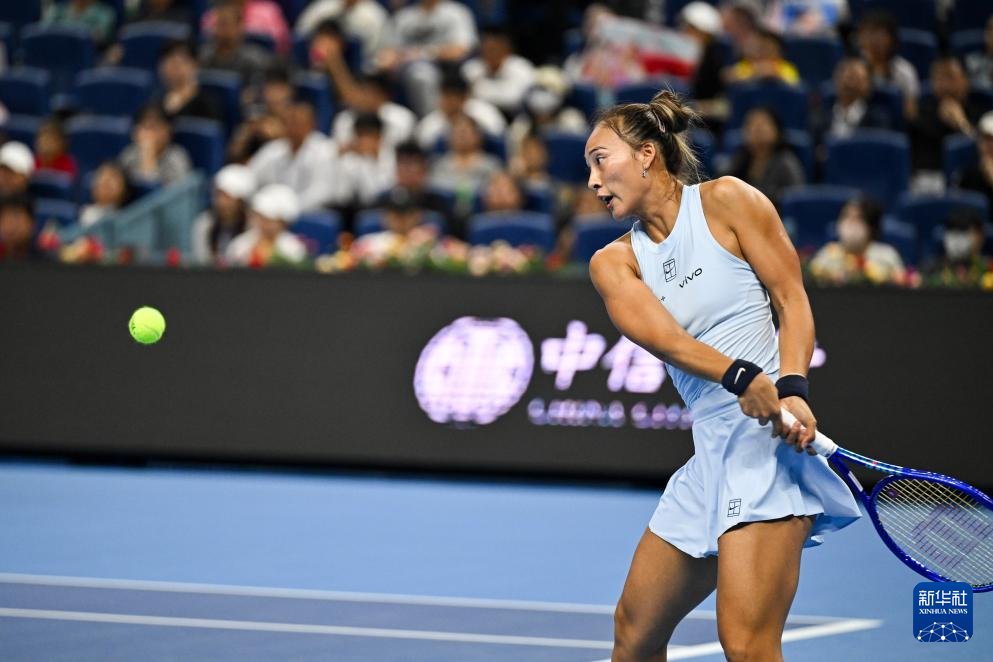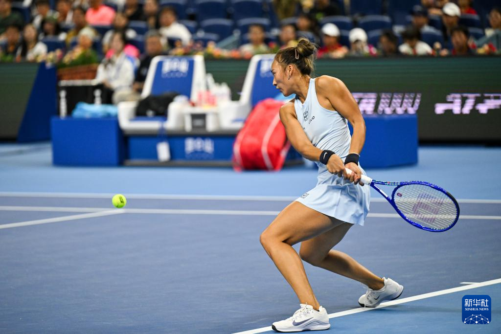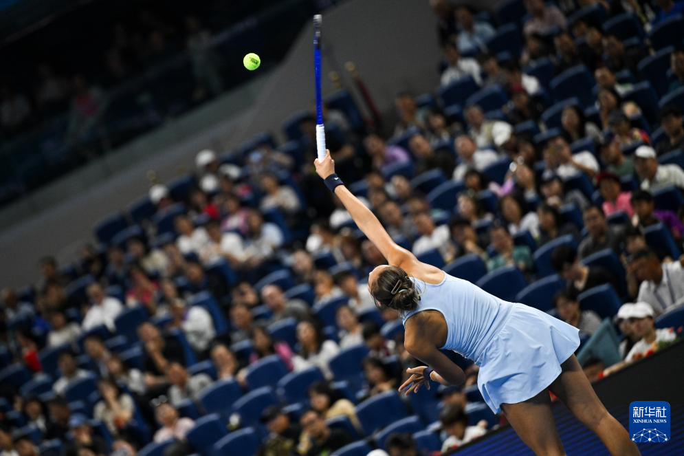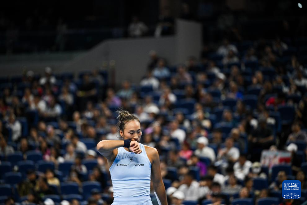 当日,在北京举行的2025中国网球公开赛女单第三轮比赛中,中国选手郑钦文对阵捷克选手诺斯科娃。