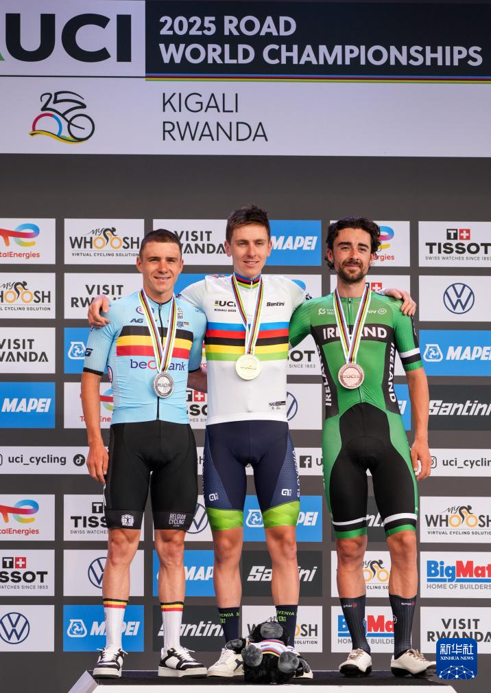 当日,2025年公路自行车世锦赛男子精英组比赛在卢旺达首都基加利举行。