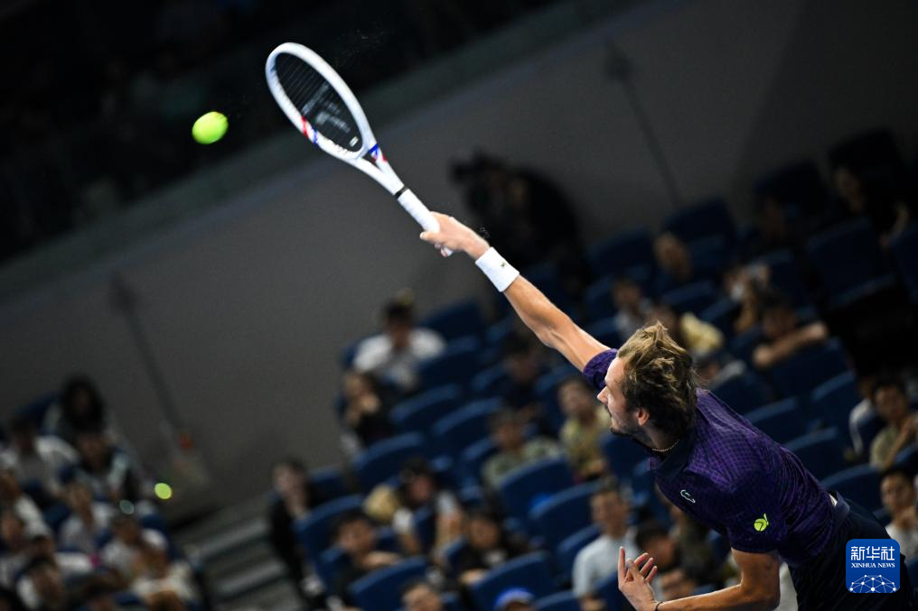 9月29日,梅德韦杰夫在比赛中发球。