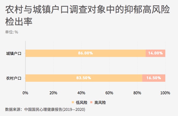 ??? 農(nóng)村戶口人群中抑郁風(fēng)險略高于城鎮(zhèn)戶口人群