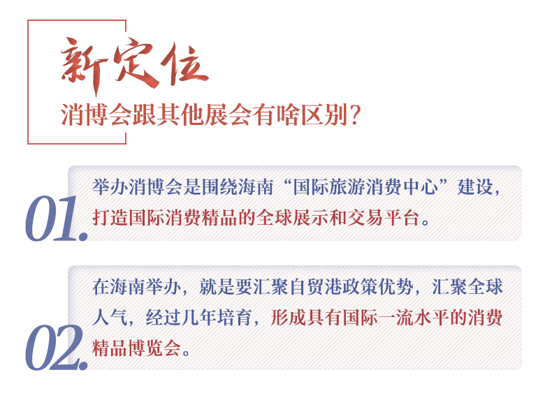 ??? 本屆消博會圍繞海南 "國際旅游消費(fèi)中心"建設(shè),匯聚海南自貿(mào)港政策優(yōu)勢,打造國際消費(fèi)精品的全球展示和交易平臺。“消博會可實(shí)現(xiàn)全球買家、賣家的直接交易,引進(jìn)國外優(yōu)質(zhì)消費(fèi)品,彌補(bǔ)國內(nèi)高端供給不足,是暢通國內(nèi)大循環(huán)的載體;聯(lián)通兩個市場,推動商品、服務(wù)和要素順暢流動,也是促進(jìn)雙循環(huán)的載體”,對于舉辦消博會的意義,商務(wù)部副部長王炳南這樣闡釋。