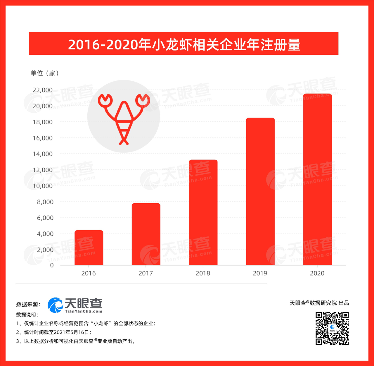 ????? 天眼查數(shù)據(jù)顯示,我國現(xiàn)有企業(yè)名稱或經(jīng)營范圍包括“小龍蝦”,且狀態(tài)為在業(yè)、存續(xù)、遷入、遷出的小龍蝦相關(guān)企業(yè)超1.7萬家。其中,約9成的相關(guān)企業(yè)成立于5年以內(nèi)。