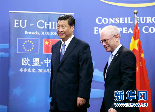 ????新華網(wǎng)布魯塞爾3月31日電(記者 魏建華 錢彤)國家主席習近平31日在布魯塞爾同歐洲理事會主席范龍佩舉行會談。雙方就新形勢下深化中歐全面戰(zhàn)略伙伴關系廣泛深入交換意見,達成重要共識。習近平強調,要從戰(zhàn)略高度看待中歐關系,將中歐兩大力量、兩大市場、兩大文明結合起來,共同打造中歐和平、增長、改革、文明四大伙伴關系,為中歐合作注入新動力,為世界發(fā)展繁榮作出更大貢獻。