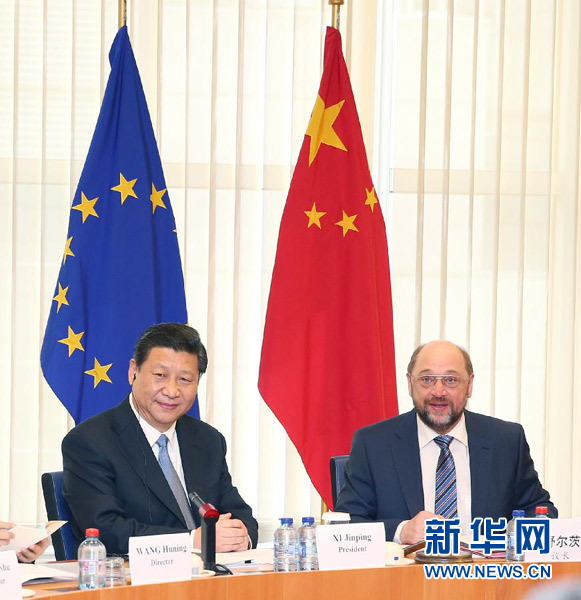 ????3月31日,國家主席習(xí)近平在比利時(shí)布魯塞爾會(huì)見歐洲議會(huì)議長舒爾茨。 新華社記者 馬占成 攝