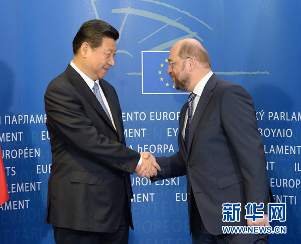 ????新華網(wǎng)布魯塞爾3月31日電(記者孟娜 徐劍梅)國家主席習(xí)近平31日在布魯塞爾會(huì)見歐洲議會(huì)議長舒爾茨。