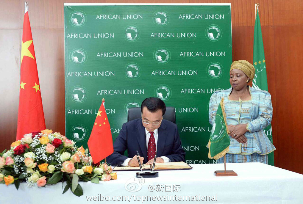 ????新華網北京5月6日電 據(jù)新華社“新國際”微博報道,5日上午,李克強在非盟委員會副主席姆溫查陪同下參觀了非盟會議中心。參觀結束后,應非盟委員會主席祖馬邀請,李克強在貴賓簿上題詞。