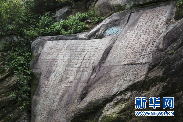 ??? 走進(jìn)那段記錄在石壁上的海絲歷史聯(lián)合國(guó)教科文組織“海絲”考察隊(duì)于1991年觀摩祈風(fēng)石刻,認(rèn)定此為宋元時(shí)期海上絲綢之路起點(diǎn)的文物佐證,并做中英文新刻(5月8日攝)。 26年來,今年65歲的文物管理所原所長(zhǎng)胡家其老人已經(jīng)記不得多少次向人們講述九日山作為宋元時(shí)期海上絲綢之路起點(diǎn)的歷史,但他從不言倦。福建泉州豐州鎮(zhèn)九日山因“山中無石不刻字”而與眾不同。這座海拔只有一百多米的小山現(xiàn)存古代摩崖石刻77方,其中宋代石刻61方。這61方石刻中又有10方直接與海上絲綢之路有關(guān),記錄了公元1174年至1266年期間11次官辦祈風(fēng)儀式。新華社記者 姜克紅 攝