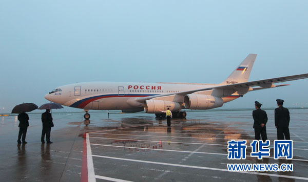??? 5月20日,俄羅斯聯(lián)邦總統(tǒng)普京抵達(dá)上海,開始對(duì)中國(guó)進(jìn)行為期兩天的國(guó)事訪問并出席在上海舉行的亞洲相互協(xié)作與信任措施會(huì)議第四次峰會(huì)。這是普京乘坐的專機(jī)抵達(dá)上海虹橋國(guó)際機(jī)場(chǎng)。 新華社記者 裴鑫 攝