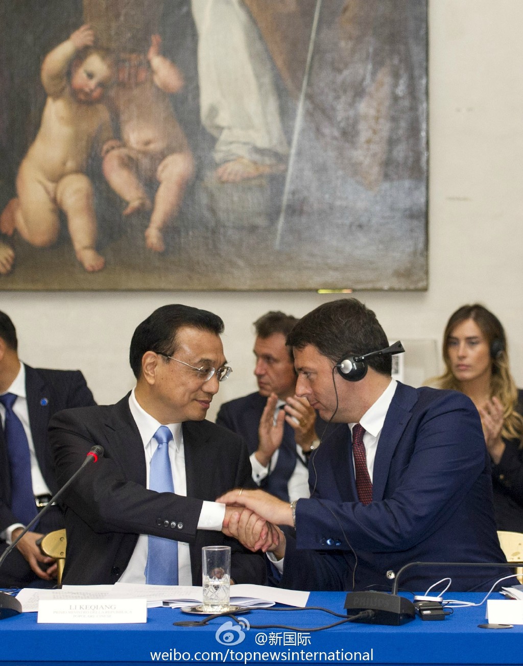 ????新華網(wǎng)北京10月15日電 據(jù)新華社“新國(guó)際”微博報(bào)道,中意兩國(guó)總理14日在羅馬共見(jiàn)兩國(guó)企業(yè)家代表,李克強(qiáng)說(shuō),企業(yè)界是推動(dòng)兩國(guó)合作的主體和生力軍。當(dāng)前中意都進(jìn)入了依靠創(chuàng)新驅(qū)動(dòng)的時(shí)代,這不僅需要科技創(chuàng)新,而且需要人文精神。希望兩國(guó)企業(yè)家爭(zhēng)做現(xiàn)代馬可·波羅,發(fā)揮互補(bǔ)優(yōu)勢(shì),推動(dòng)企業(yè)間合作邁上創(chuàng)新的路程。