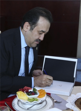 (馬西莫夫總理在自己的書(shū)上簽上名字,攝影記者:龐興雷)